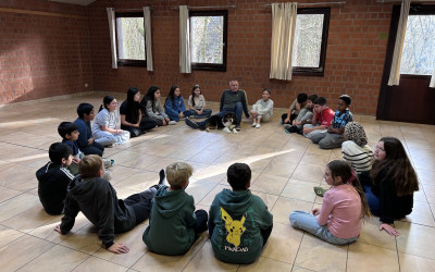 Die Klasse 5d der Realschule am Europakanal machte sich für drei Tage auf den Weg ins Schullandheim nach Rothmannsthal – begleitet von Herrn Haas, Frau Wechsler und dem unerschütterlich geduldigen Erlebnispädagogen Herrn Ackermann. Schon auf der Hinfahrt lag Abenteuer in der Luft … und ein bisschen Nervosität, ob das Bettenbeziehen funktioniert und man im Schullandheim wirklich selbst kochen muss.