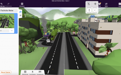 Zuerst lasen wir den Jugendroman „Tschick“ von Wolfgang Herrndorf und bearbeiteten ihn in Form digitaler Lesetagebücher. Das war nichts Neues für uns. Doch dann sollten wir die Szenen, die wir uns vorgestellt hatten, nicht auf Papier zeichnen, sondern mit CoSpacesEdu in VR darstellen. Schnell erwachten die Buchszenen in unserem Klassenzimmer zum Leben. Wir gestalteten VR-Welten, die wichtige Orte und Ereignisse aus „Tschick“ zeigten, wie Maiks Kinderzimmer, den Schrottplatz, den Berg am See und den tragischen Autounfall. Unsere kreativen und detailreichen Umsetzungen beeindruckten alle.