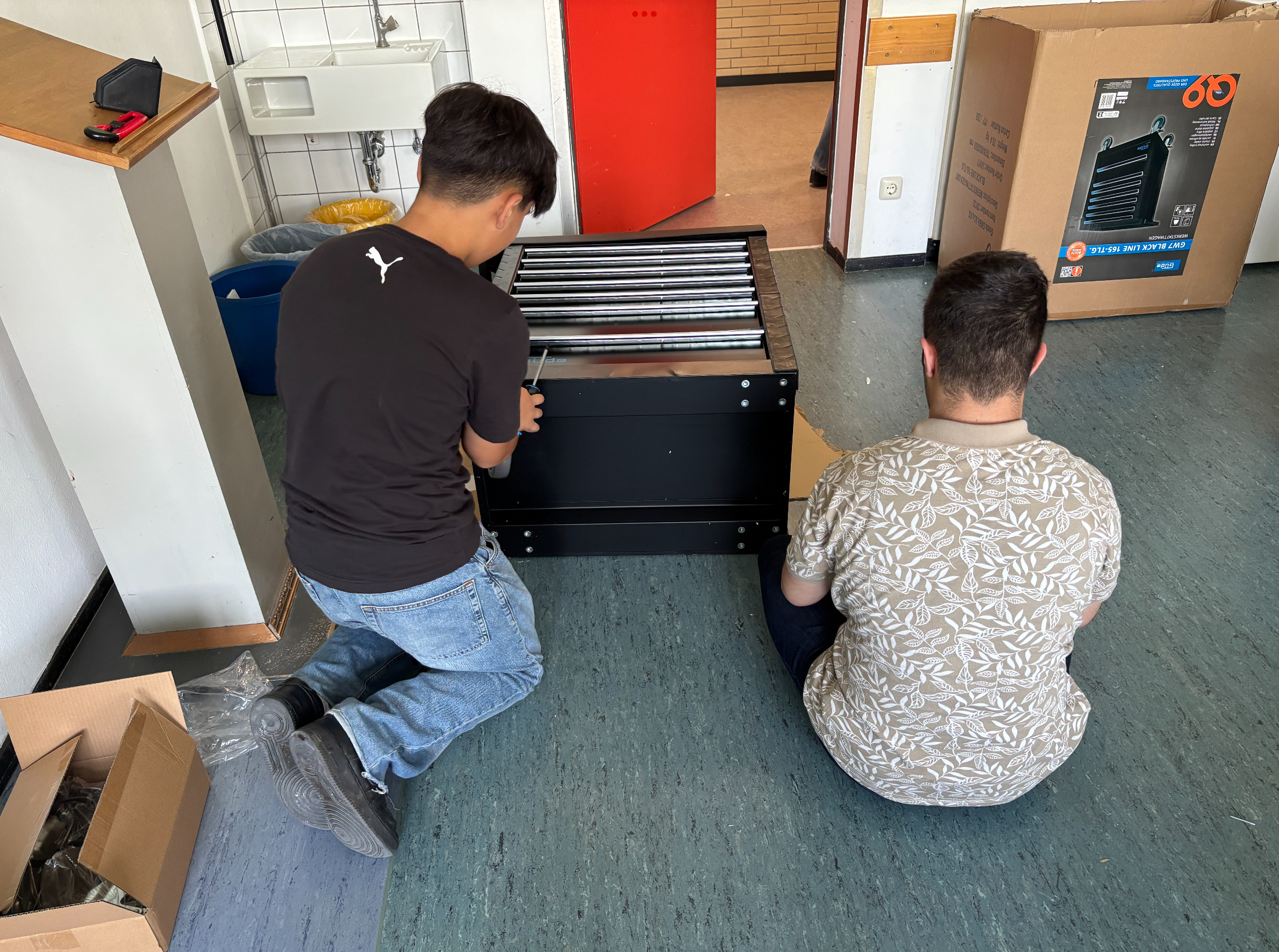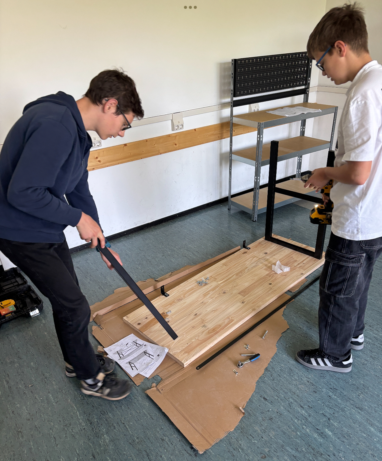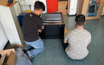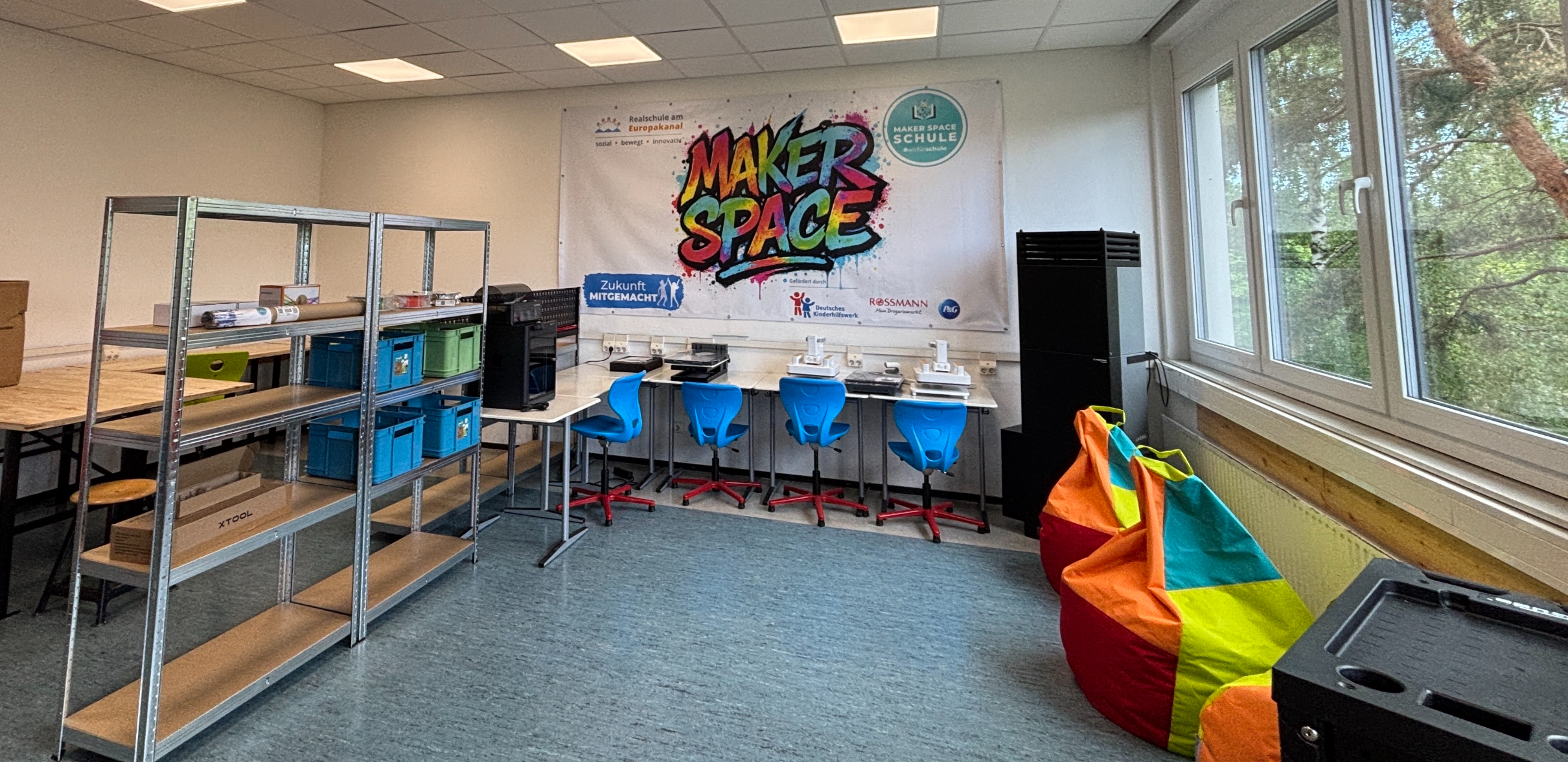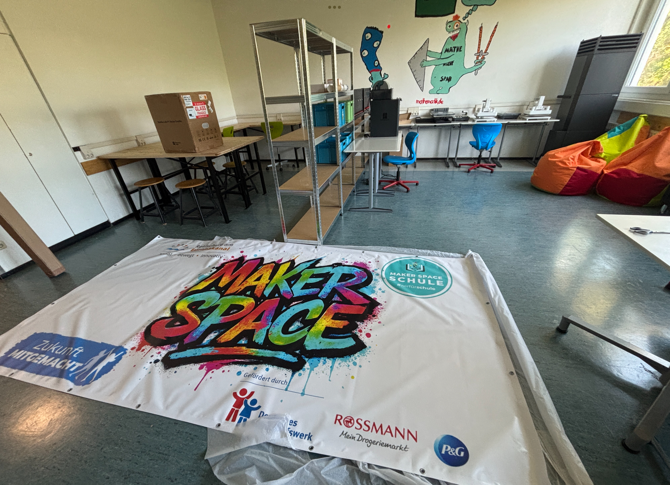 Von Beginn an stand uns der Förderverein tatkräftig zur Seite und unterstütze das Projekt. Die Freude war riesig, als vor wenigen Tagen die ersten Pakete eintrafen und sich unser Vorhaben plötzlich in greifbare Realität verwandelte. Aus einem ehemaligen Ausweichklassenzimmer entsteht seither Stück für Stück ein moderner Kreativraum, in dem Tüfteln, Gestalten und Erfinden großgeschrieben wird.