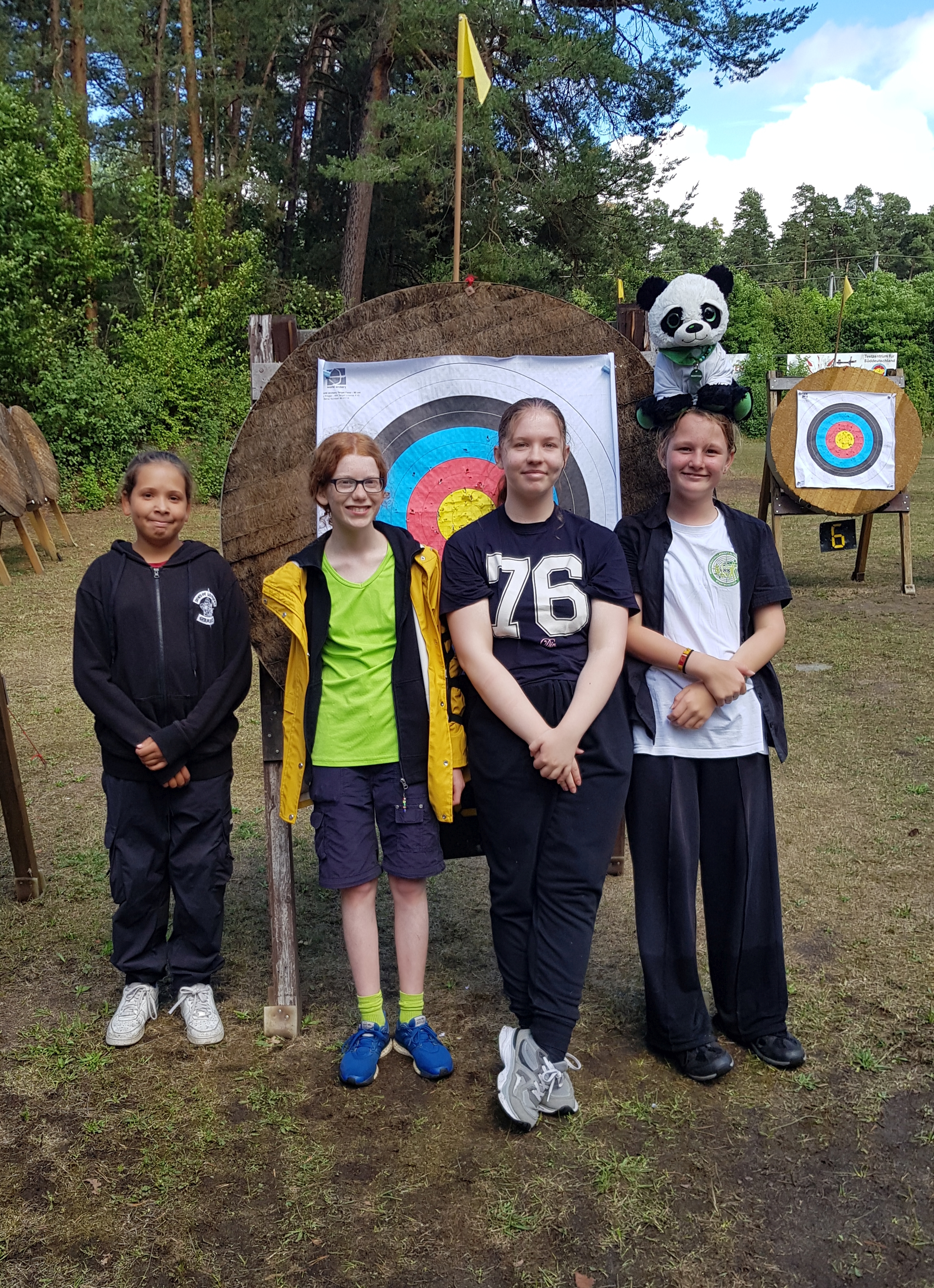 Bayerische Schulmeisterschaft 2025 im Bogenschießen in Feucht, die Realschule am Europakanal war wieder dabei! Unsere Schule vertreten haben: Camron Pickett, Franziska Purkott, Marina Heß und Olivia Wicke. Wir waren dieses Mal also mit vier Teilnehmenden dabei, so dass wir eine Mannschaft stellen konnten, die nach insgesamt mehr als 6.000 geschossenen Pfeilen auf dem 9. Platz notiert wurde. Einmal mehr war es faszinierend, die Disziplin und die Ausdauer der Schülerinnen und Schüler zu erleben, noch dazu bei mehreren Stunden strömenden Regen!