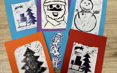Die Klasse 8a hat sich vor Weihnachten in der Linolschnitt- Technik geübt und bezaubernde weihnachtliche Motive dabei hergestellt.