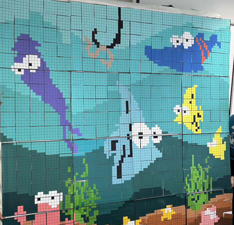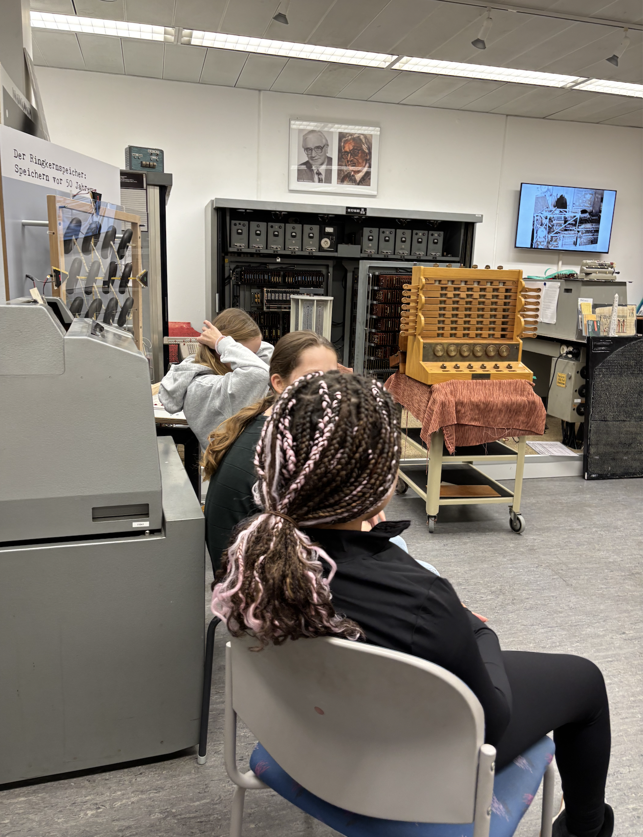 Mit viel Kreativität und praktischem Ausprobieren entdeckten die Kinder, warum ein digital erzeugtes Bild auch Rasterbild genannt wird. Mithilfe rechteckiger Puzzleteilchen legten sie eigene Bilder und erfuhren dabei anschaulich, welche Rolle die Pixelgröße spielt und was unter Auflösung zu verstehen ist. Schnell wurde deutlich: Je kleiner die einzelnen Bildpunkte, desto genauer und detailreicher erscheint das Gesamtbild. Die Klasse wurde für diesen Projekttag in zwei Gruppen geteilt. Während eine Gruppe aktiv am Workshop teilnahm, besuchte die andere Gruppe parallel eine spannende Führung durch die Informatiksammlung der FAU. Dort erhielten die Schülerinnen und Schüler interessante Einblicke in die Entwicklung der Computertechnik und konnten historische Geräte und Exponate aus nächster Nähe betrachten.