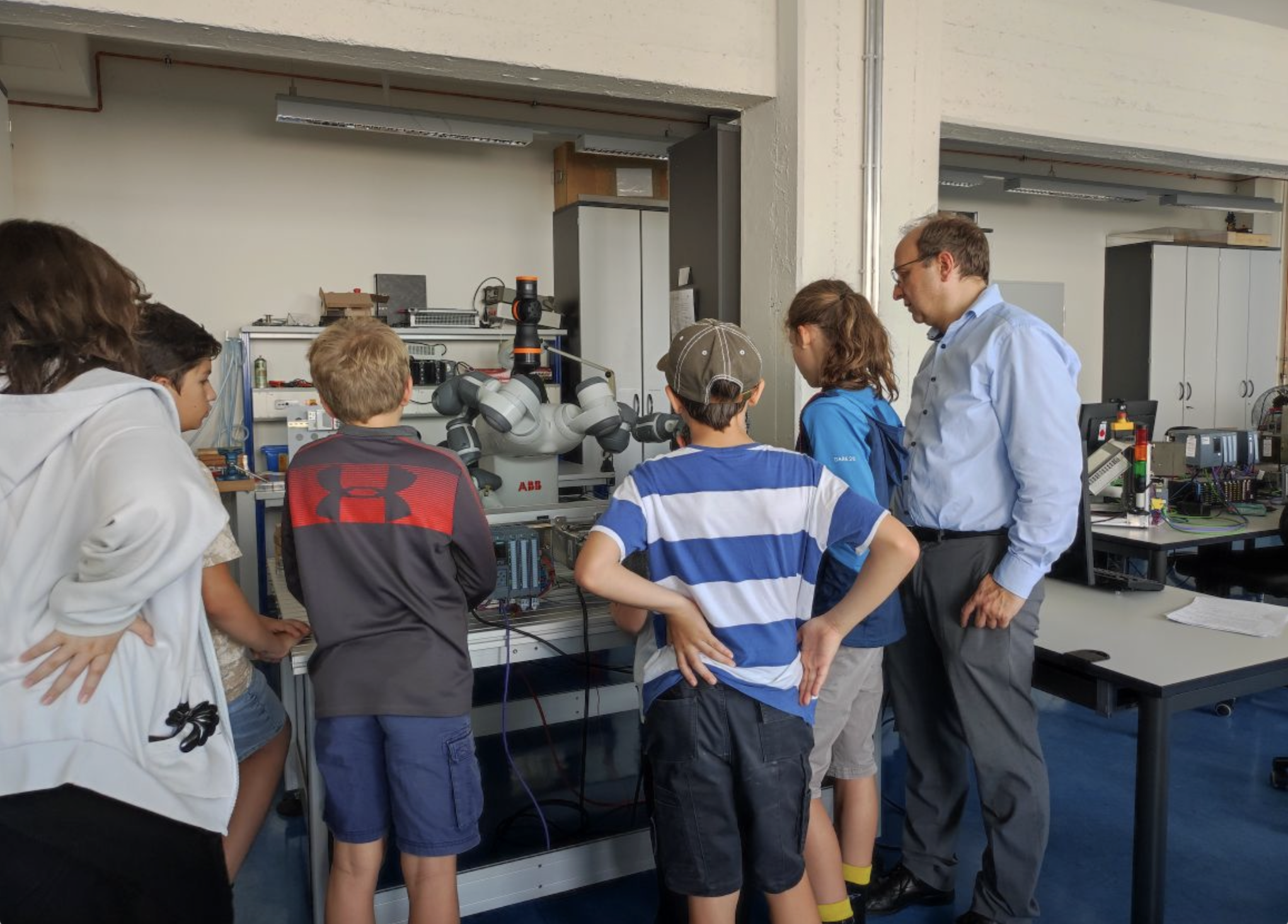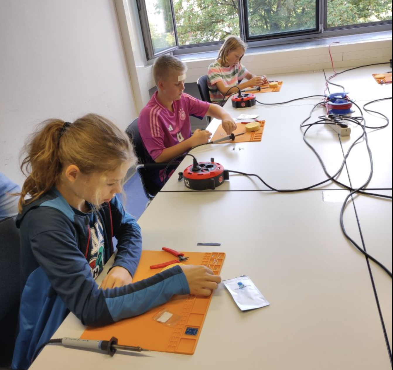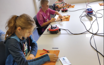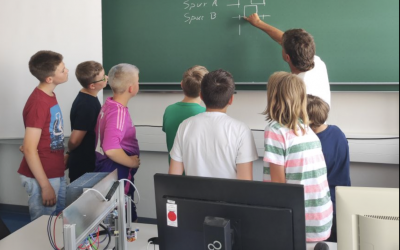 Ende Juli ging es für die Robotik AG mit dem Zug nach Nürnberg zur Technischen Hochschule „OHM“. In Kleingruppen löteten die Schüler eine Mini-LED-Lichtorgel, die bei den 5. und 6. Klässlern große Begeisterung auslöste – und das ganz ohne verbrannte Finger. Anschließend fand ein kleiner Wettbewerb im Programmieren der Lego Mindstorms statt. Dabei mussten die Schüler ihre Roboter so programmieren, dass diese einen Parcours entlang einer Spur bewältigen konnten. Den Abschluss bildete die Besichtigung des Automatisierungslabors. Dort bestaunten die Schüler mehrere Roboter, darunter einen, der Kugeln farblich sortiert und einen anderen, der die perfekte „Fischsemmel“ zusammenstellt.