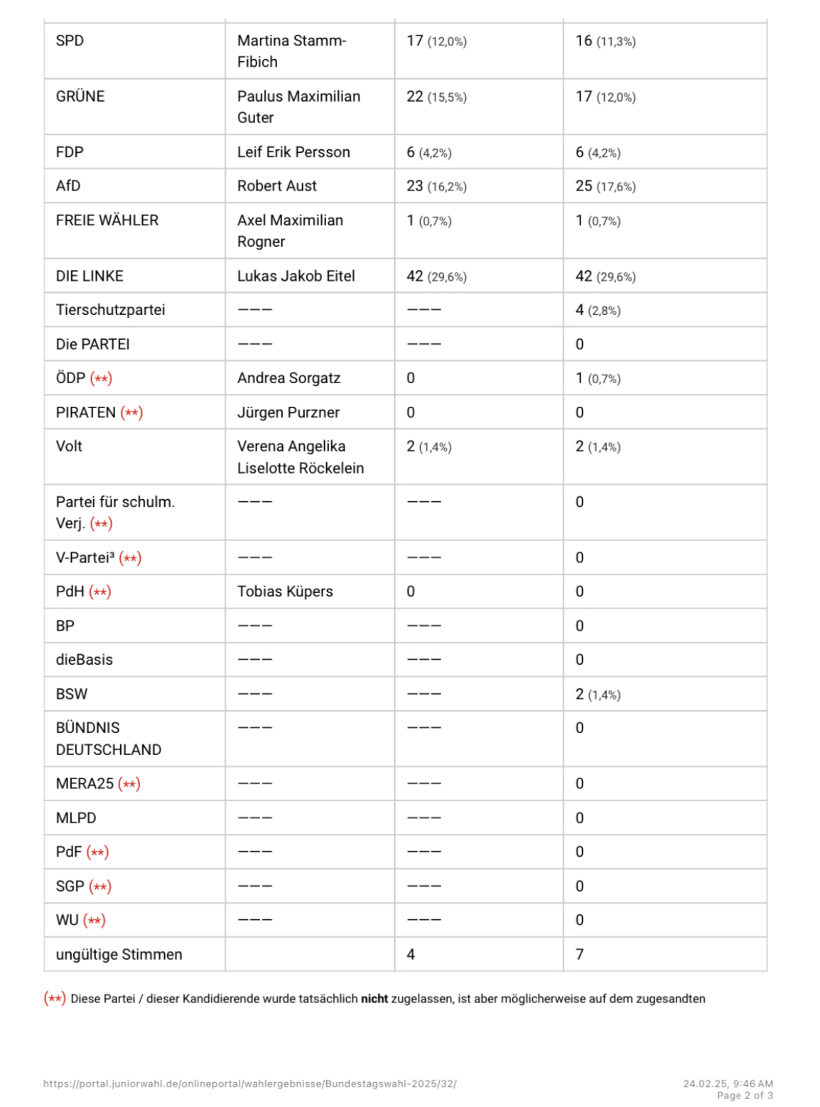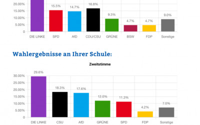 Schülerinnen und Schüler die Möglichkeit, ihre Stimme abzugeben. Das SMV-Zimmer diente als Wahlbüro und war von Mittwoch bis Freitag in den Pausen geöffnet. Noch am Freitag wurden die Stimmen ausgezählt und übermittelt. Sowohl bei der Erststimme als auch bei der Zweitstimme gewann "Die Linke" (siehe Ergebnisgrafik).