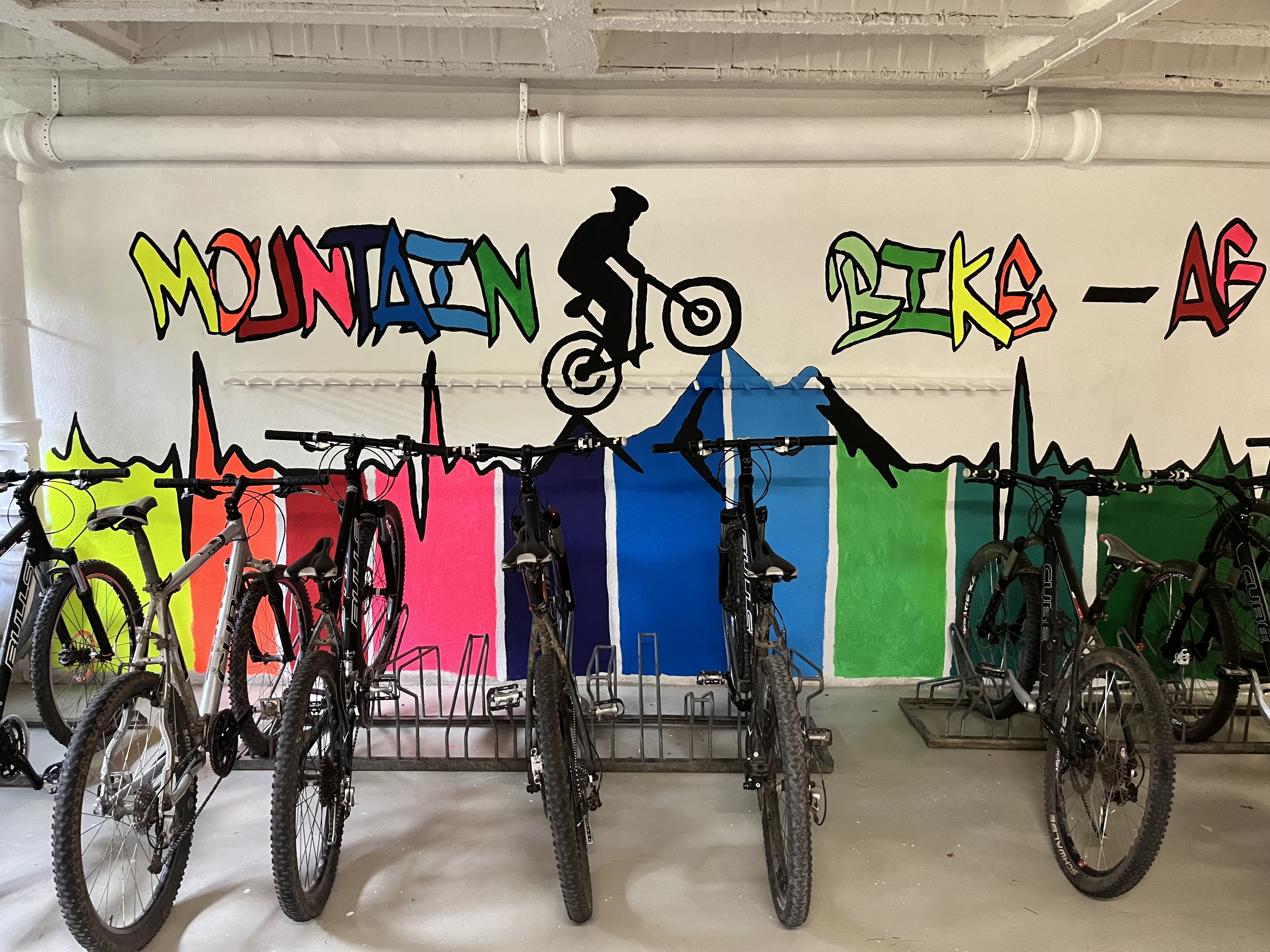 2022 gestaltete die Designklasse den Fahrradkeller neu – speziell für die Mountainbike-AG.