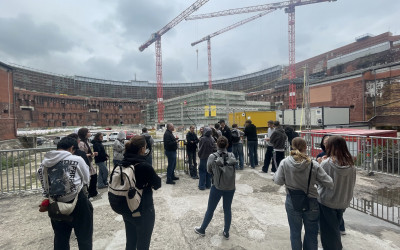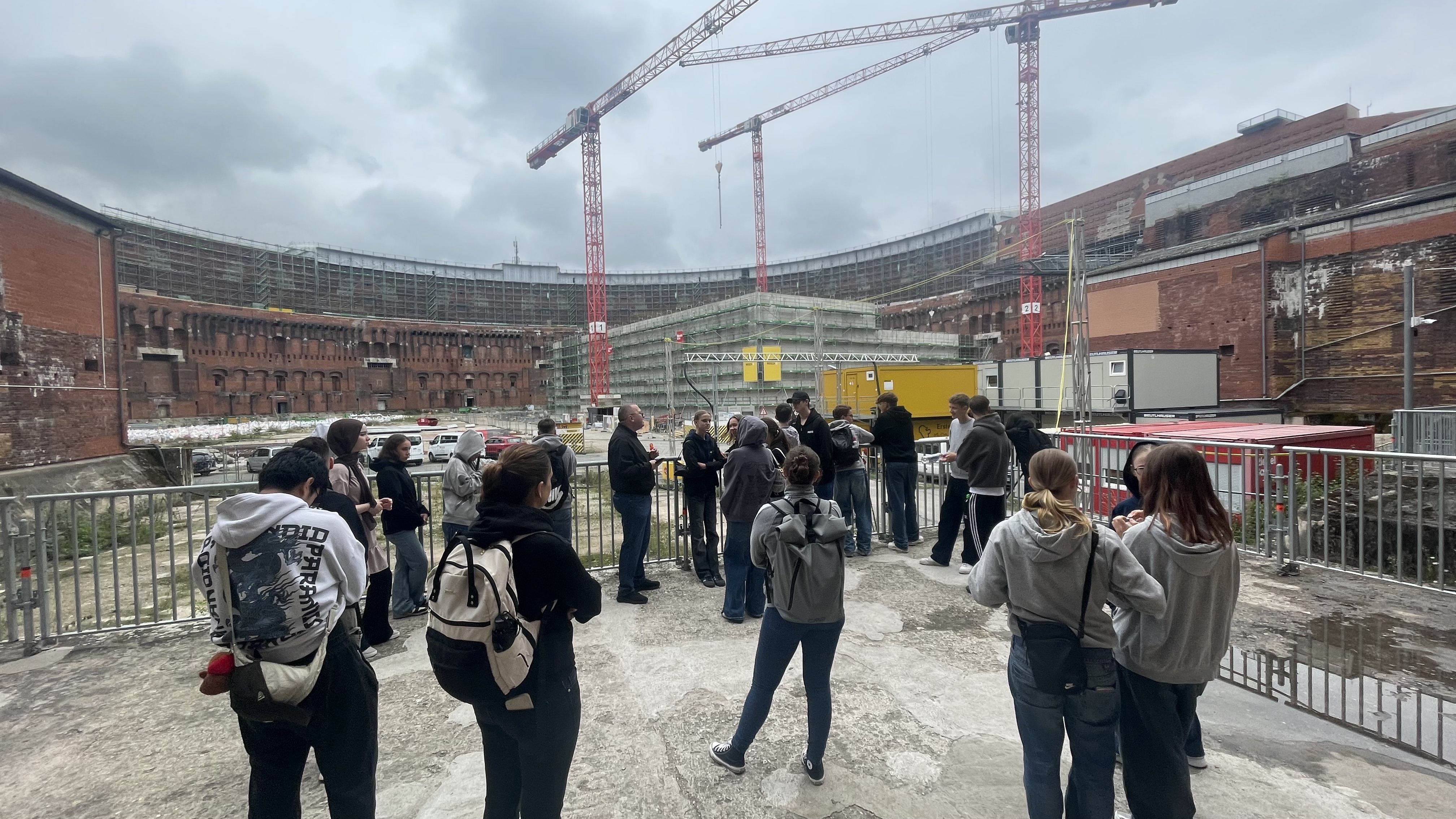 Gestartet wurde am Dokumentationszentrum mit einem Blick in den monumentalen Innenhof der Kongresshalle. Die überdimensionierten Ausmaße und die gezielte Wirkung dieser Architektur beeindruckten die Schüler sehr.