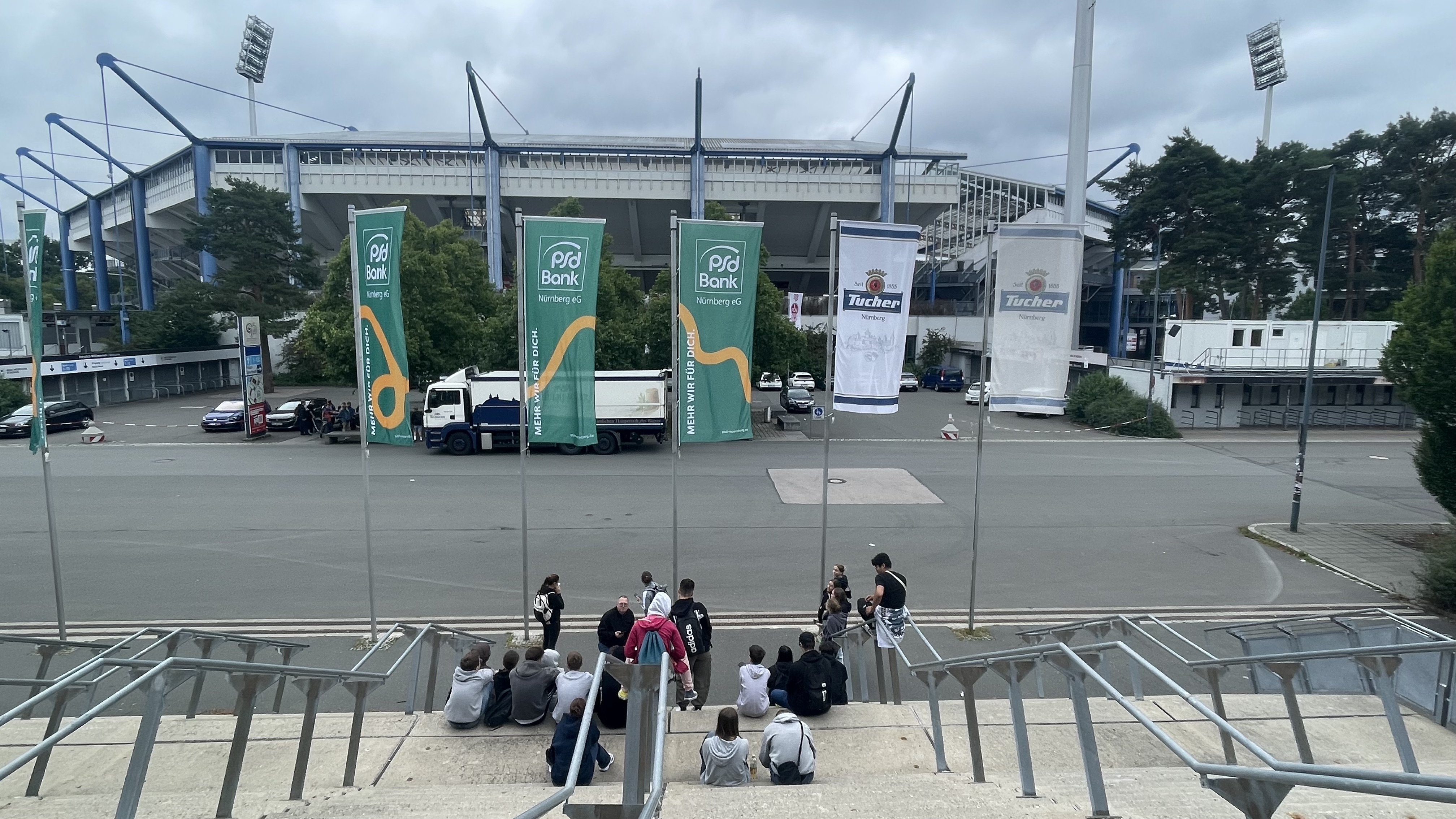 Weiter ging es vorbei am Volksfestplatz zum Silbersee – einer ehemaligen Baugrube, deren ursprünglicher Zweck den meisten unbekannt war: Hier sollte einst das Deutsche Stadion mit über 400.000 Sitzplätzen entstehen. Im Vergleich dazu wirkt das nahegelegene Max-Morlock-Stadion mit seinen rund 50.000 Plätzen fast klein.