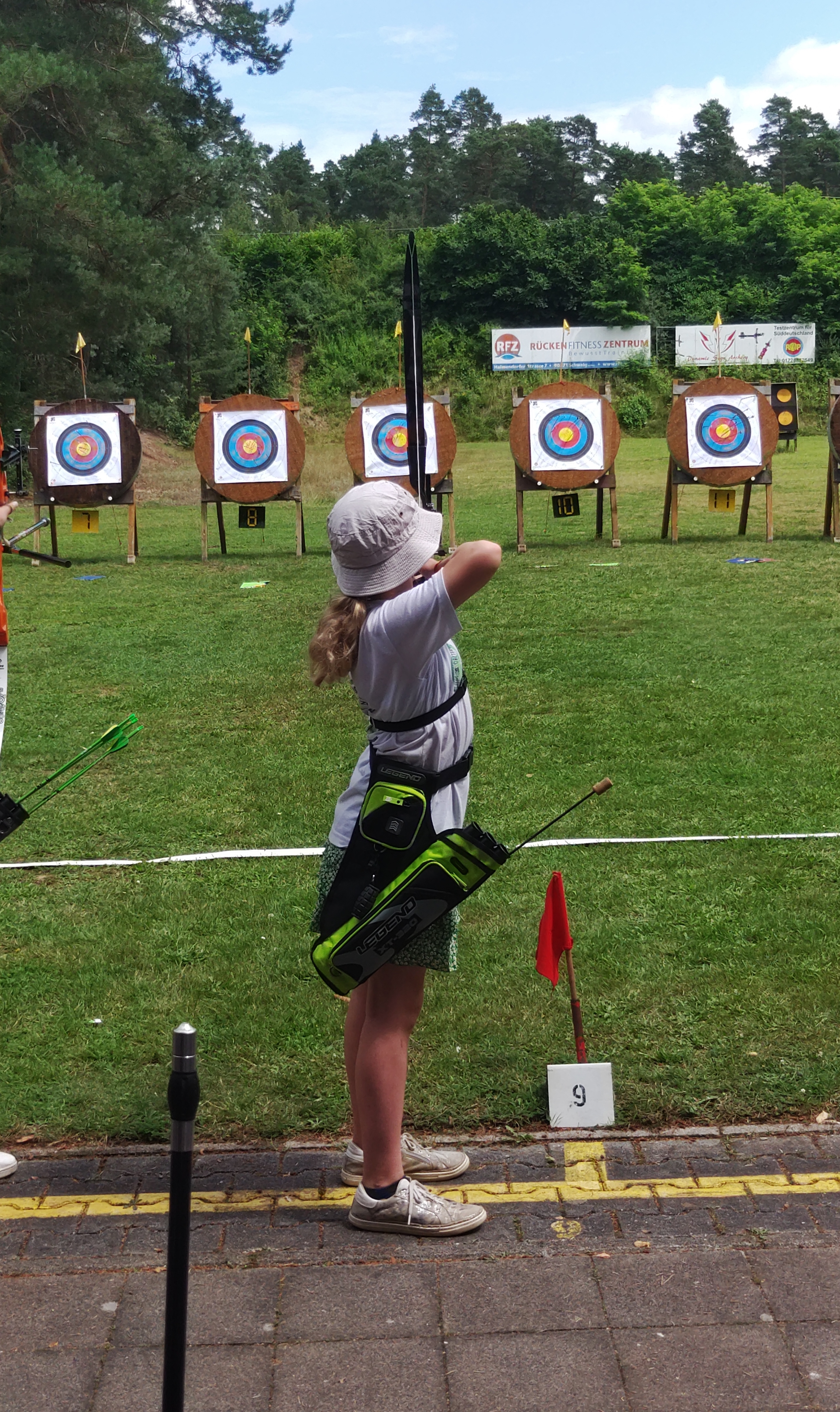 Zwei unserer Schülerinnen nahmen am 16. Juli an den Bayerischen Schulmeisterschaften im Bogenschießen in Feucht teil. Franziska Purkott (5b) und Marina Heß (6e) bewiesen, was diesen Sport ausmacht: Konzentration, Genauigkeit und Durchhaltevermögen – so ein Wettkampftag kann, wie hier, auch mal sieben Stunden dauern. (Als Lehrer muss ich das jetzt einfach schreiben: allesamt Eigenschaften, die jedem Schüler und jeder Schülerin gut stehen.)