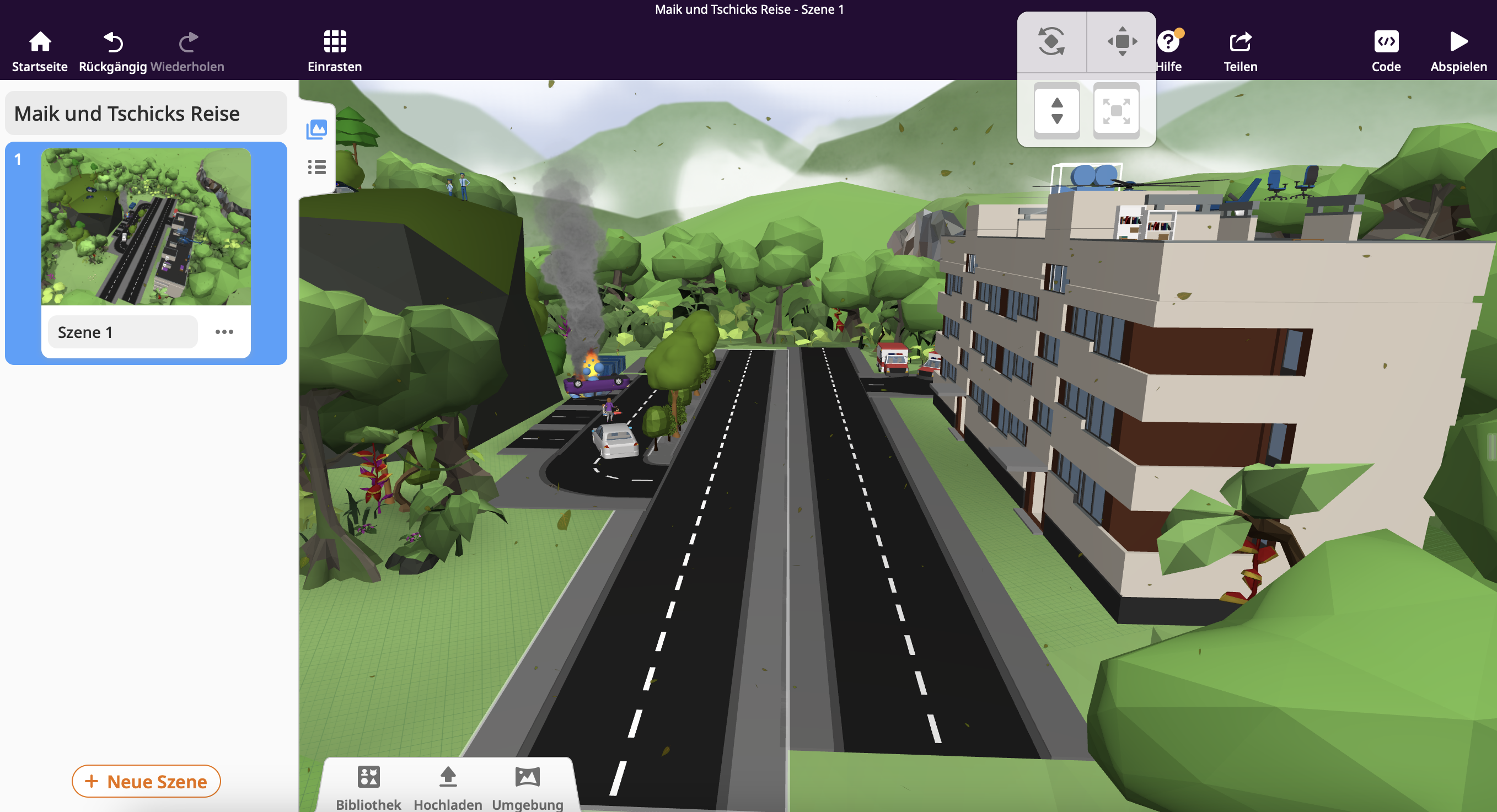 Zuerst lasen wir den Jugendroman „Tschick“ von Wolfgang Herrndorf und bearbeiteten ihn in Form digitaler Lesetagebücher. Das war nichts Neues für uns. Doch dann sollten wir die Szenen, die wir uns vorgestellt hatten, nicht auf Papier zeichnen, sondern mit CoSpacesEdu in VR darstellen. Schnell erwachten die Buchszenen in unserem Klassenzimmer zum Leben. Wir gestalteten VR-Welten, die wichtige Orte und Ereignisse aus „Tschick“ zeigten, wie Maiks Kinderzimmer, den Schrottplatz, den Berg am See und den tragischen Autounfall. Unsere kreativen und detailreichen Umsetzungen beeindruckten alle.