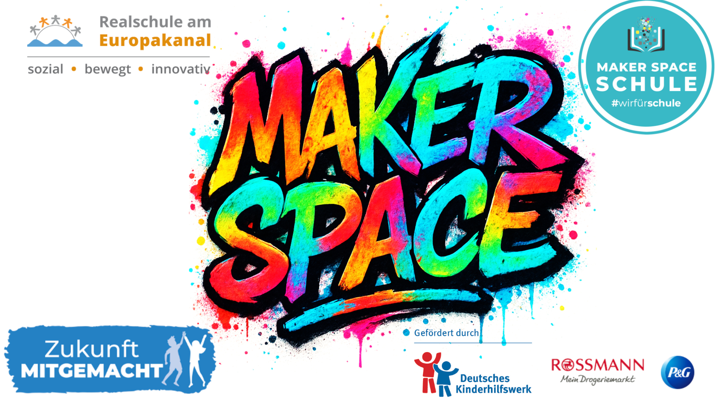 "Gefördert durch die Initiative ZUKUNFT MITGEMACHT, einer Gemeinschaftsaktion des Deutschen Kinderhilfswerkes, ROSSMANN und Procter & Gamble"