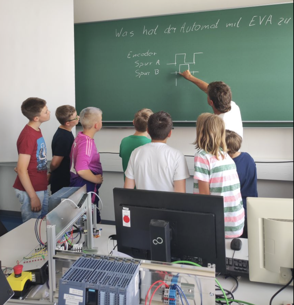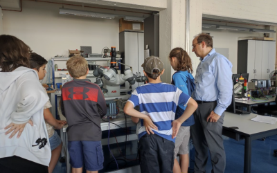 Ende Juli ging es für die Robotik AG mit dem Zug nach Nürnberg zur Technischen Hochschule „OHM“. In Kleingruppen löteten die Schüler eine Mini-LED-Lichtorgel, die bei den 5. und 6. Klässlern große Begeisterung auslöste – und das ganz ohne verbrannte Finger. Anschließend fand ein kleiner Wettbewerb im Programmieren der Lego Mindstorms statt. Dabei mussten die Schüler ihre Roboter so programmieren, dass diese einen Parcours entlang einer Spur bewältigen konnten. Den Abschluss bildete die Besichtigung des Automatisierungslabors. Dort bestaunten die Schüler mehrere Roboter, darunter einen, der Kugeln farblich sortiert und einen anderen, der die perfekte „Fischsemmel“ zusammenstellt.