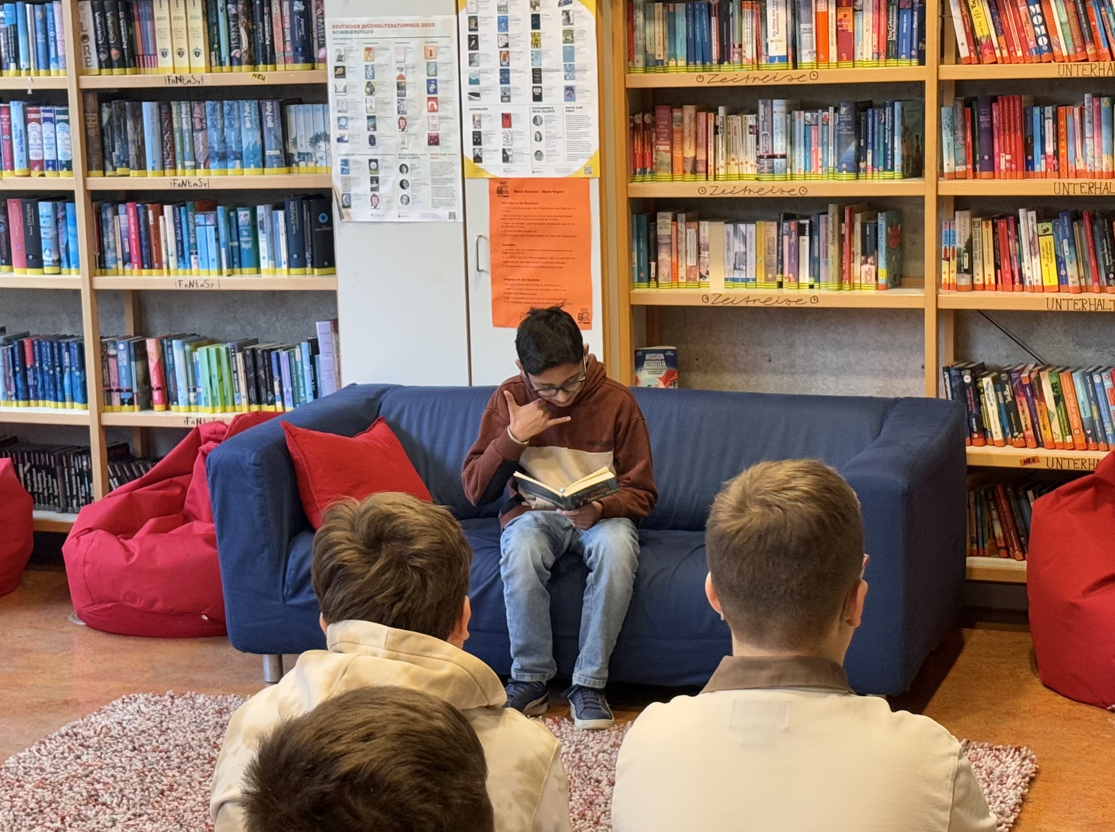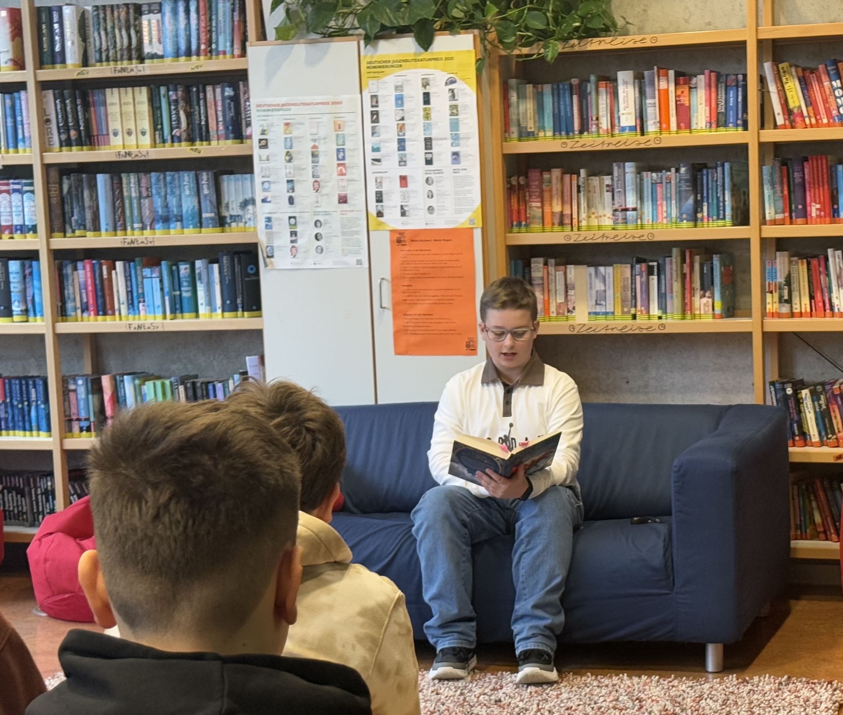Nach einer kurzen Stärkung mit Snacks und Kaffee begann die Vorlesephase. Kian las aus „Sams Geheimnis“ von Dieter Winkler und fesselte das Publikum mit einer gefühlsbetonten und lebendigen Darbietung. Vincent wählte „Royal Institute of Magic – Die Hüter der Verborgenen“ von Victor Kloss und beeindruckte mit einer souveränen und ausdrucksstarken Lesung.