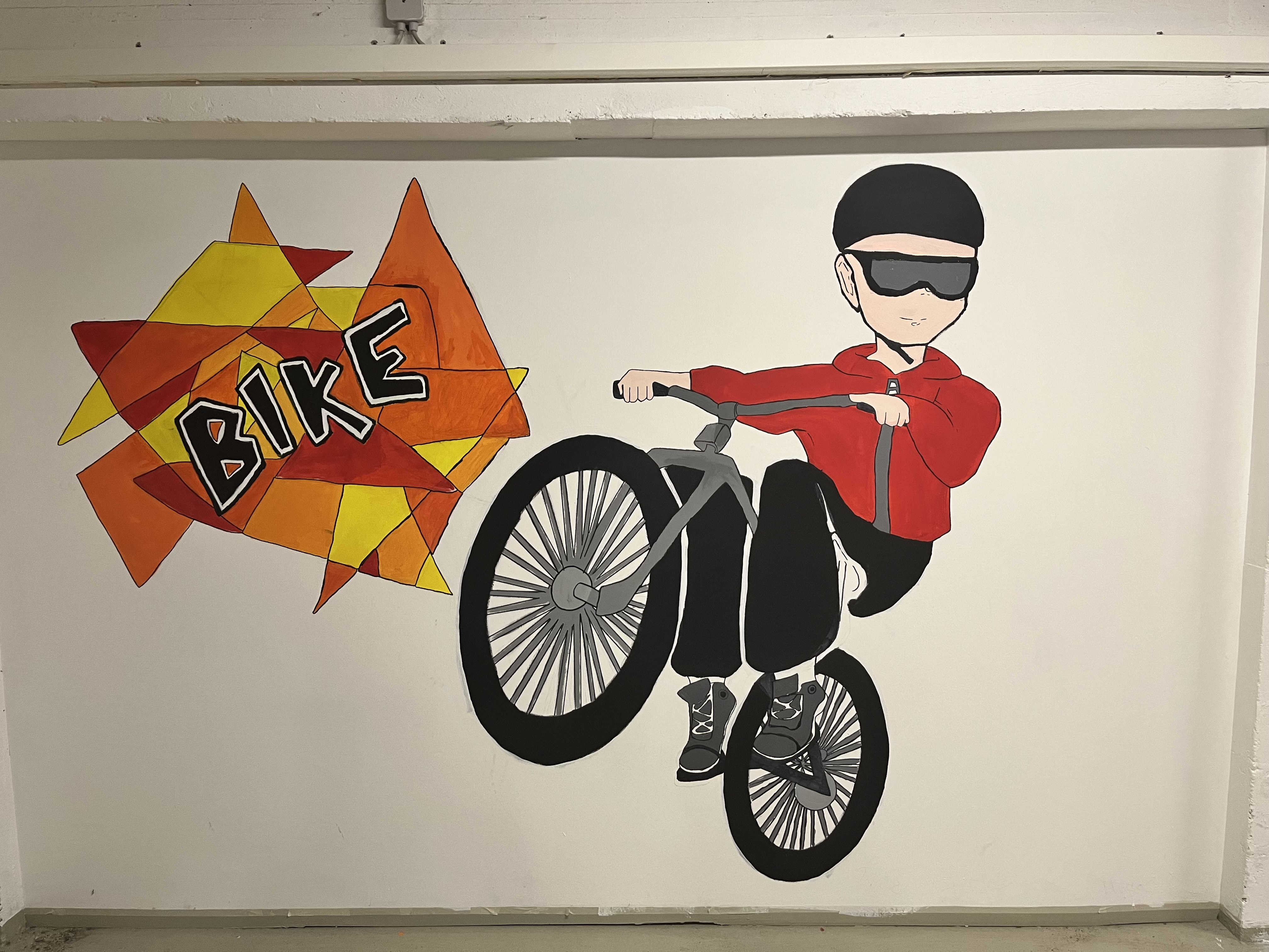 2022 gestaltete die Designklasse den Fahrradkeller neu – speziell für die Mountainbike-AG.